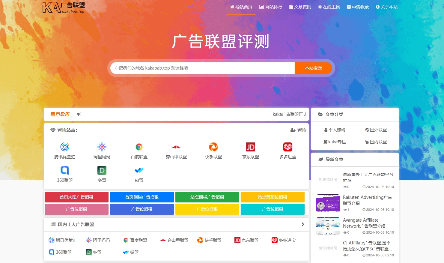kaka广告联盟评测网站介绍,励志成为最全、分类最清晰的广告联盟测评网站!